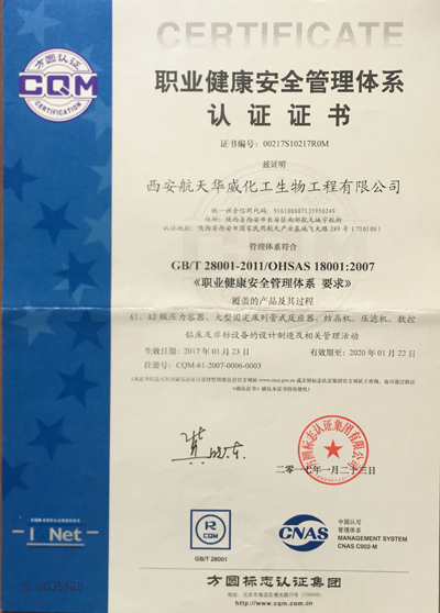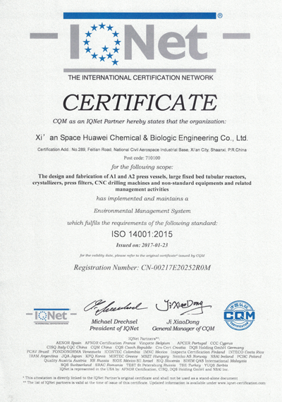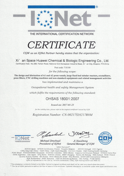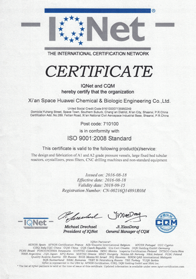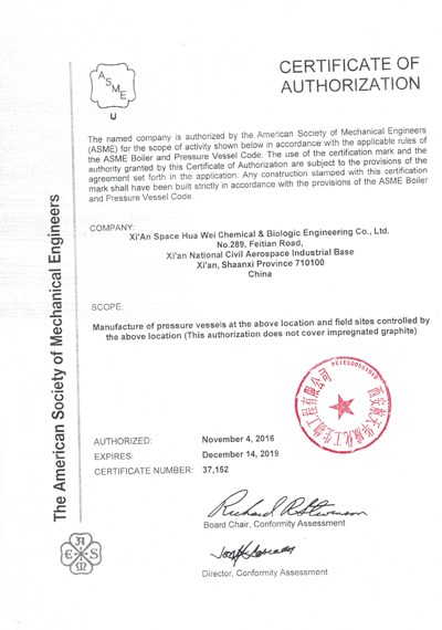 西安航天華威化工生物工程有限公司擁有全面壓力容器及非標(biāo)準(zhǔn)設(shè)備設(shè)計(jì)、制造的各項(xiàng)認(rèn)證資格,確保向客戶提供符合各項(xiàng)標(biāo)準(zhǔn)的產(chǎn)品。